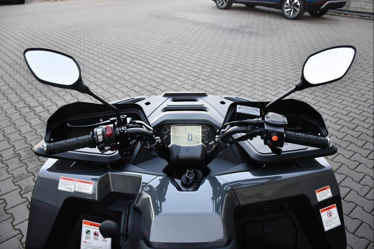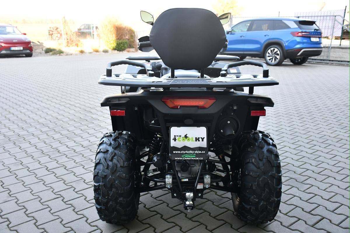 Nová užitková / pracovně-rekreační čtyřkolka s prodlouženým podvozkem, elektrický posilovač řízení EPS, kapalinou chlazený jednoválec 499 cm3 EFI o výkonu 39hp, automatická převodovka P/R/N/L/H, brzdění motorem, pohon 4x4, dvojitá A-ramena vpředu / dvojitá A-ramena se stabilizátorem vzadu, hydraulické tlumiče s progresivními pružinami, přední a zadní ochranné rámy, tažné zařízení, el. naviják 2500 lbs, kovové nosiče vpředu a vzadu, Full-LED osvětlení, prodloužené sedadlo spolujezdce s opěrkou zad, 12V zásuvka, 12" hliníkové disky, 25" pneu, ochranné kryty rukojetí, homologace Euro5 +