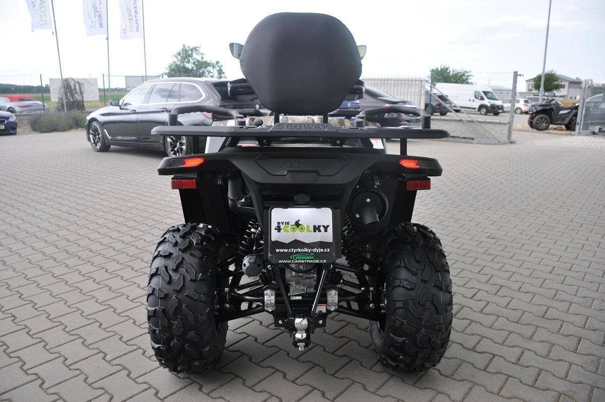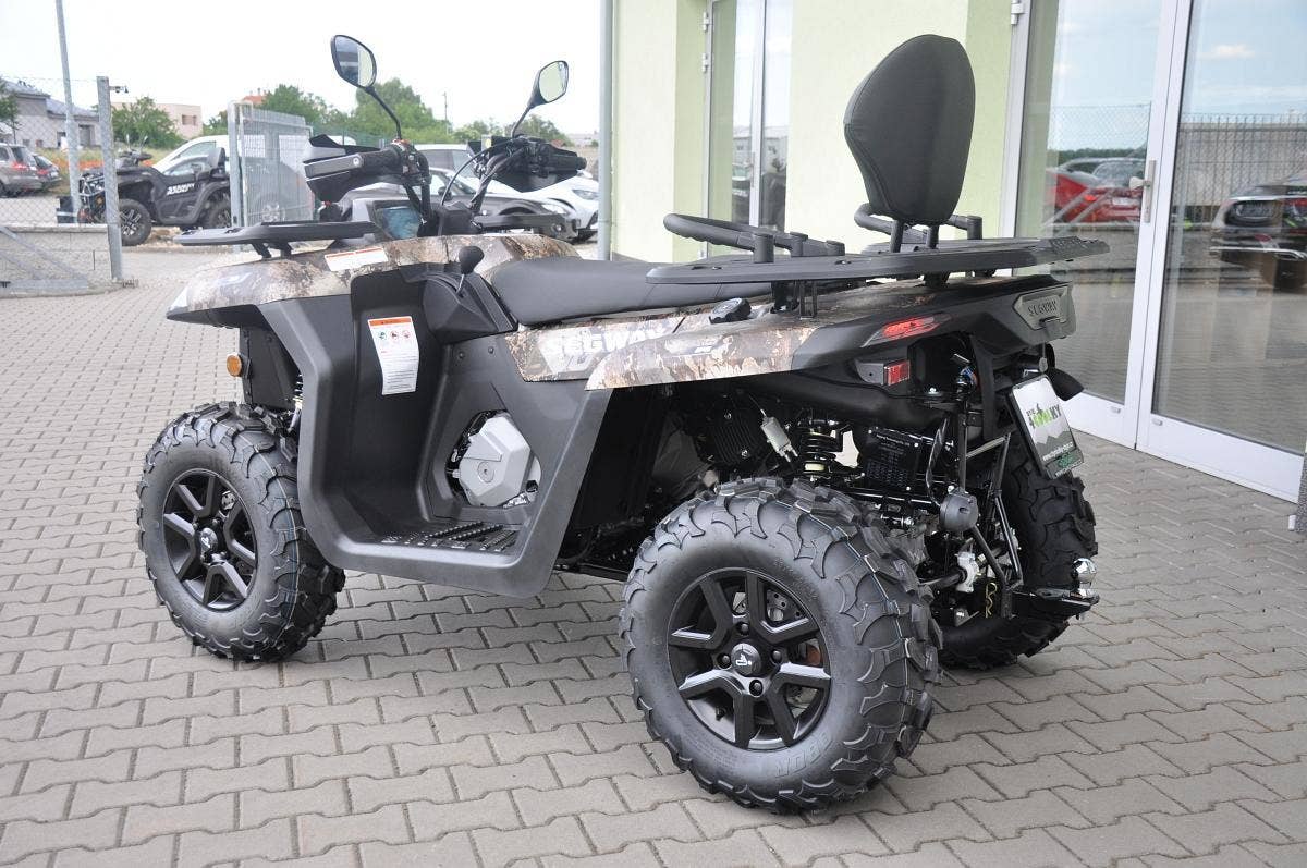 Nová užitková / pracovně-rekreační čtyřkolka s prodlouženým podvozkem, T3b, elektrický posilovač řízení EPS, kapalinou chlazený jednoválec 499 cm3 EFI o výkonu 39hp, automatická převodovka P/R/N/L/H, brzdění motorem, pohon 4x4, dvojitá A-ramena vpředu / dvojitá A-ramena se stabilizátorem vzadu, hydraulické tlumiče s progresivními pružinami, přední a zadní ochranné rámy, tažné zařízení, el. naviják 2500 lbs, kompozitní nosiče vpředu a vzadu, Full-LED osvětlení, prodloužené sedadlo spolujezdce s opěrkou zad, 12V zásuvka, 12" hliníkové disky, 25" pneu, ochranné kryty rukojetí
